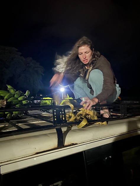 Through the course of the day, to a person, our group was respectful and deferential, generous and slow to frustrate. They offered help — and asked for it openly. Mack took the brunt of the kilometers after we switched to relay-style riding; Catie and Heather lifted bikes onto the roof of our van as we started to swap out. (Catie had also taken the lead in taking bikes down before a full-blown African-style storm struck the night before.) Travis, a development economist and a richly seasoned traveler, helped us understand the shifts in the crops we traversed as the topography changed, now punctuated by butte-like formations that rose on the horizon, offering a focal objective. And everyone was kind to our support team.